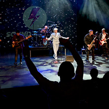Chris Burke, has an unmatched vocal similarity to Bowie. His vocal ability allows